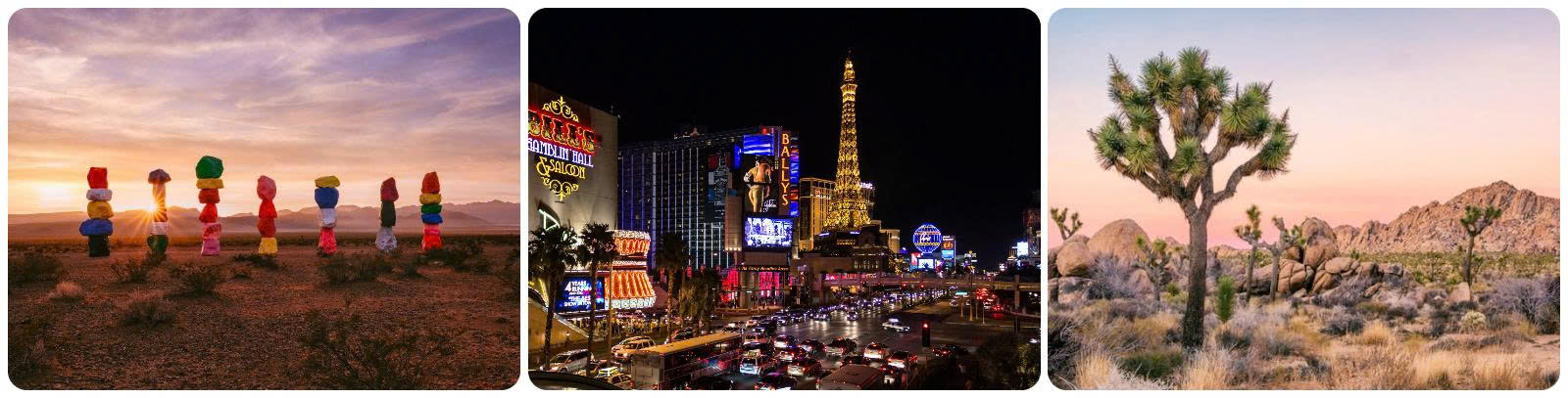 - Seven Magic Mountain với tên gọi công viên đá 7 màu là một tác phẩm nghệ thuật sắp đặt vô cùng độc đáo tọa lạc ngay bên cạnh xa lộ Interstate, thuộc khu vực phía Nam của Las Vegas.