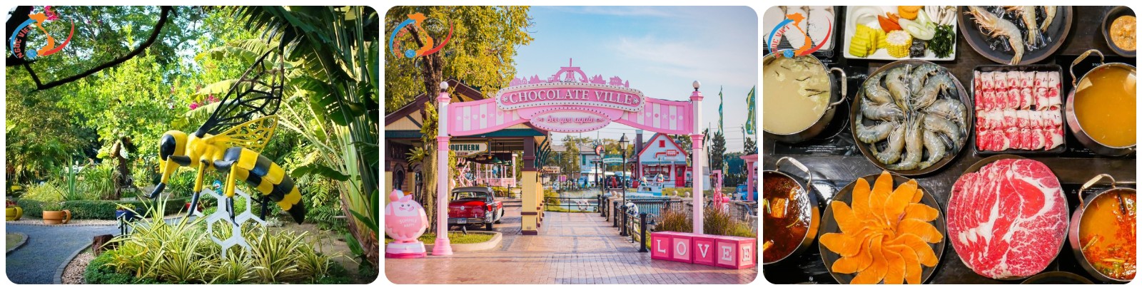 - Chocolate Ville - được xem là Châu Âu thu nhỏ tại Bangkok. Quý khách sẽ được chiêm ngưỡng những góc Châu Âu cổ kính như nhà nhỏ kiểu nông thôn, cối xay gió. Đặc biệt có thể nói nơi đây là thiên đường đồ ăn sự kết hợp giữa ẩm thực Châu Âu và Thái Lan/Trung Quốc.