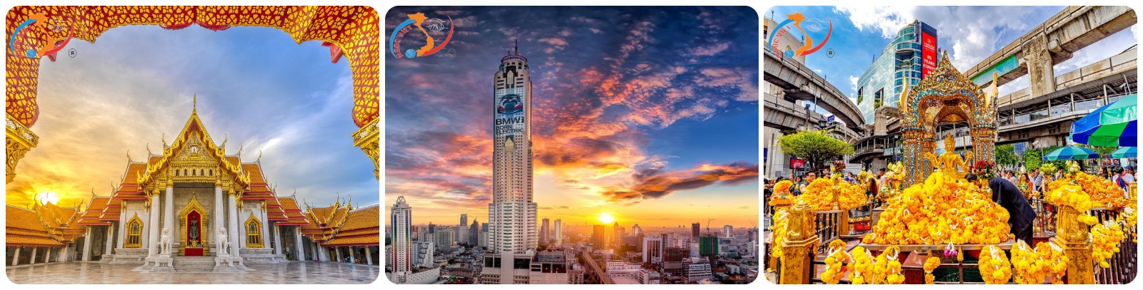 - Viếng đền Erawan – Tượng Phật bốn mặt đặt tại đền Erawan, ngay trung tâm thủ đô Thái Lan. Được người dân Thái cũng như khách du lịch rất tôn kính. Bất kỳ ai đến đây đều dân hoa vàng kết vòng mang theo niềm tin để lời nguyện cầu trở thành sự thật