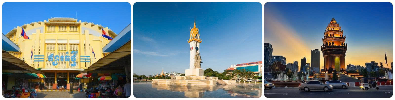 - Hoàng Cung Sihamoni: là nơi ở của Hoàng Gia Campuchia, nơi tiếp đón các phái đoàn nước khác đến thăm Vương Quốc Campuchia, cung điện thu hút sự chú ý với kiến trúc bao mái bằng vàng lấp lánh nổi bật rõ rệt trên nền trời Phnom Penh.